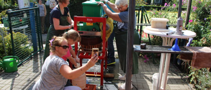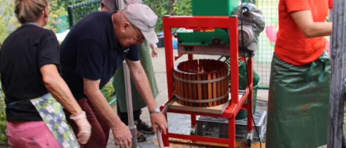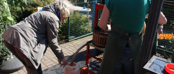 Der Andrang war sehr groß, teilweise haben viele der Teilnehmer*innen – manchmal sogar ganze Familien – mehrere Stunden warten müssen, bis aus ihren geernteten Obst der Saft gepresst, anschließend pasteurisiert und in Bag in Boxen oder Flaschen abgefüllt wurde. Letzthin hat es allen Beteiligten sehr viel Spaß gemacht und der gewonnene Obstsaft schmeckt hervorragend!